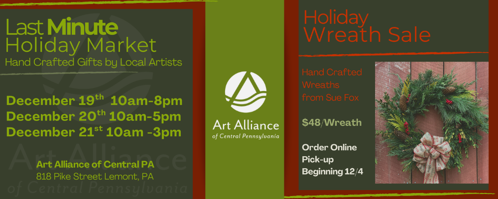 The Art Alliance of Central Pennsylvania is a nonprofit organization that exists to serve students, artists and the art-loving public in Pennsylvania’s Centre County, the adjacent counties, and beyond. Our organization builds bridges between teachers and art students of all ages, as well as between artists and potential art patrons. The Art Alliance actively encourages community members to become involved in diverse and ever changing art experiences.